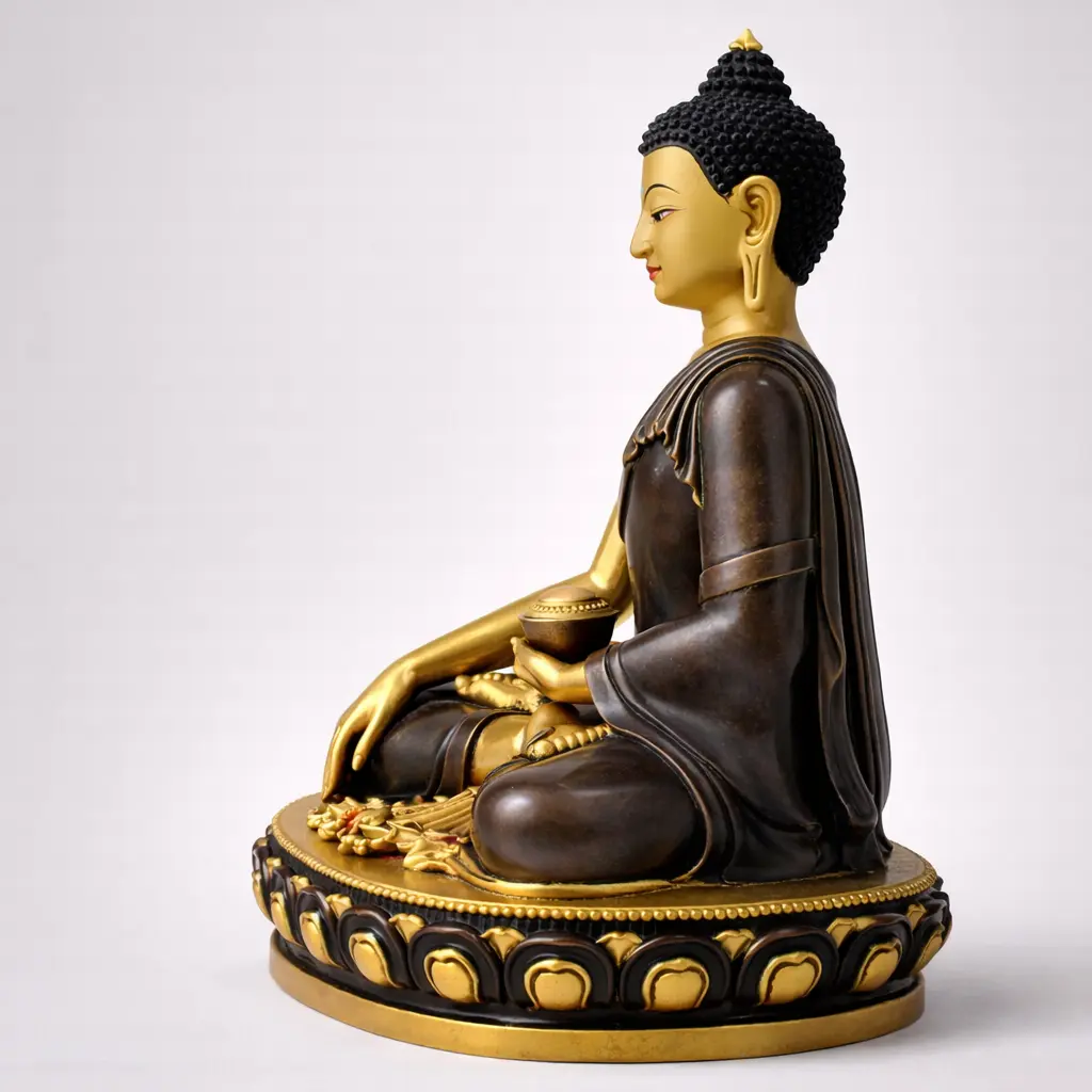 The statue is meticulously cast using a high-quality brass alloy composed of 86% copper and 13% zinc, ensuring durability, resonance, and traditional authenticity. It is then finished with pure 24K gold plating, enhancing its spiritual radiance, visual richness, and long-term value.